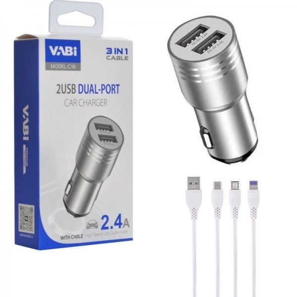 شارژر فندکی 12 وات دو پورت کابل اندروید/آیفون/تایپ سی وابی (VABI) مدل C16۳۲۵٬۰۰۰ 8%