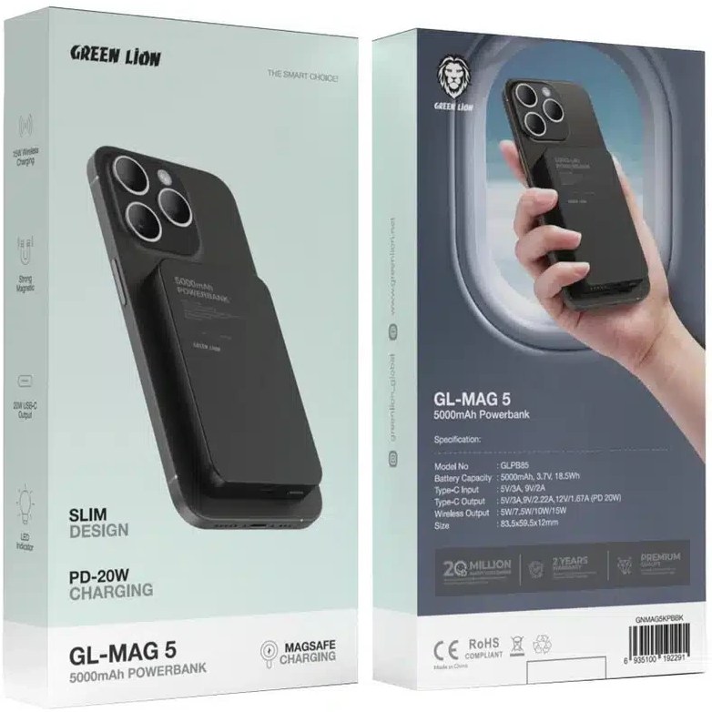 پاوربانک گرین مدل GL-MAG 5 ظرفیت ۵۰۰۰ میلی آمپر مغناطیسی۱٬۸۵۶٬۵۰۰ 12%