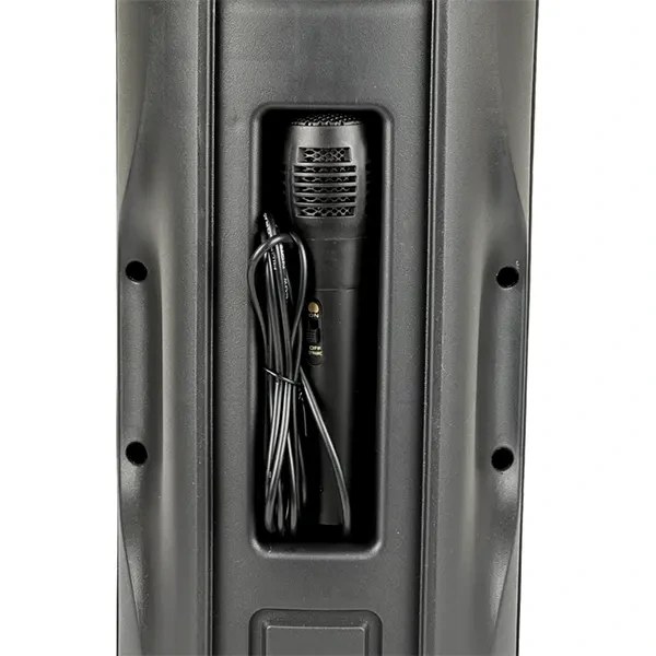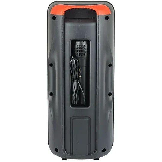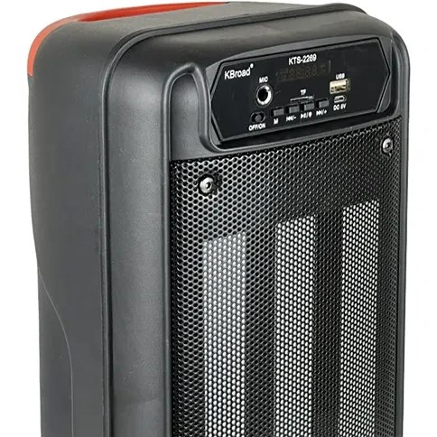 مشخصات اسپیکر 2269 دارای : اسپیکر میکروفون کابل میکروفون کابل شارژر دارای نورپردازی RGB. پشتیبانی از فلش مموری USB و کارت حافظه TF (Micro SD) تا 32 گیگابایت مجهز به ورودی جک 6.3 میلیمتری برای اتصال میکروفون ابعاد: طول۱۷/۵ عرض۱۶ ارتفاع۴۰/۵ سانتی متر وزن: ۲۰۵۱ گرم